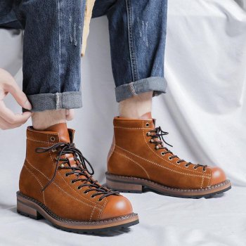 Handmade Vintage British Style Leather Ankle Boots for Men